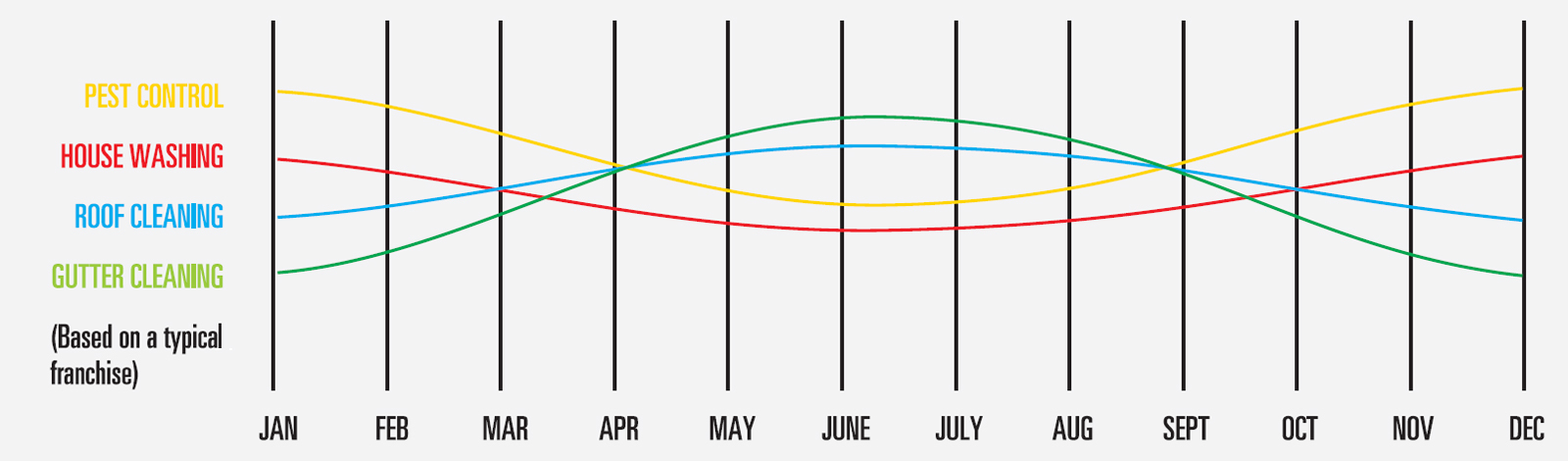 With our unique combination of house maintenance services along with pest control, our franchise provides a business that will grow your sales over the full 12 months of the year.